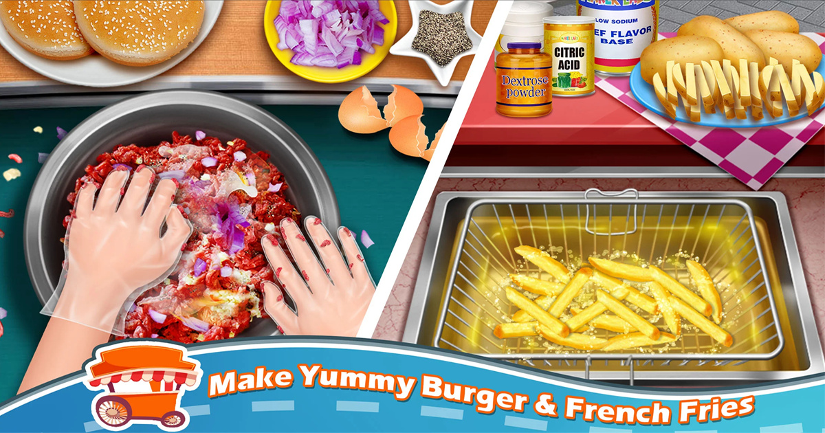 Una fiera di strada è il luogo ideale per assaporare il cibo di strada. Ritieni di avere le giuste qualità per incantare i clienti con la tua cucina in Street Food! Inizia a preparare i tuoi prelibati snack in questa straordinaria cucina virtuale. Friggi degli hot dog e guarniscili con ketchup e senape, realizza hamburger, patatine fritte, nachos, pizza e poi aggiungi condimenti straordinari per renderli attraenti quanto il loro sapore. Ti divertirai a giocare a giochi da chef mentre servono i loro piatti preferiti, e ti piacerà sapere che cucinare uno snack di alta qualità da chef non rovina la tua cucina!
