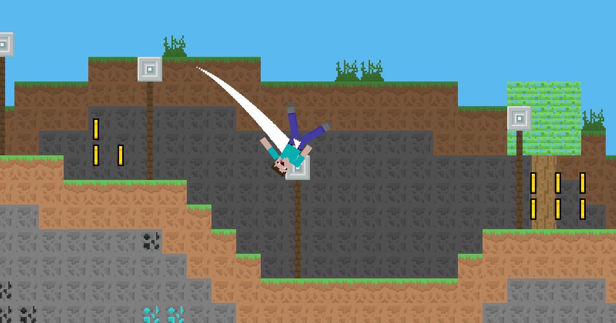 Ehi principiantesco, adesso puoi librarti da un luogo all’altro lanciando una rete. Fai attenzione, non precipitarti a terra o correrai il rischio di morire, un terreno estremamente insidioso può eliminarti in un attimo. Scaglia la rete e salta. Stai attento, ci sono lame rotanti affilate e punte di legno pericolose ovunque, non devi entrarci in contatto. Raccogli l’oro lungo il tragitto e accumula quanto più oro possibile.